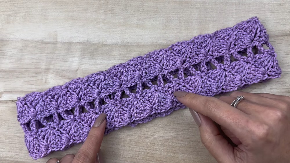 Repeat Row 3 until band reaches desired length for the head circumference (measure as you go).