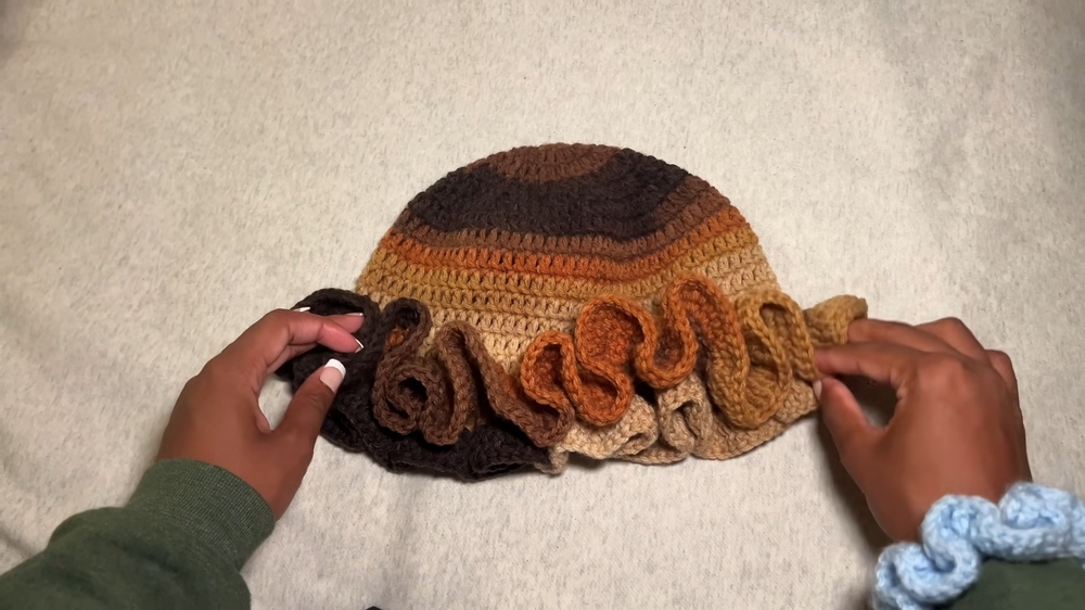 To ensure the brim ruffles perfectly, consider steam blocking the hat after finishing. This will help the ruffles lay flat and give the hat a polished look.
