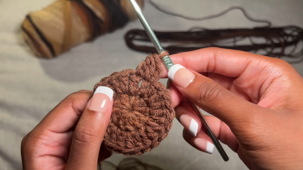- Chain two, double crochet in the same stitch, and do two double crochets in each subsequent stitch (total of 20 stitches).