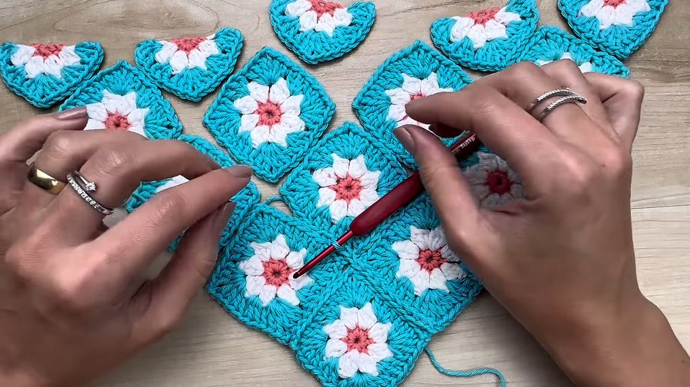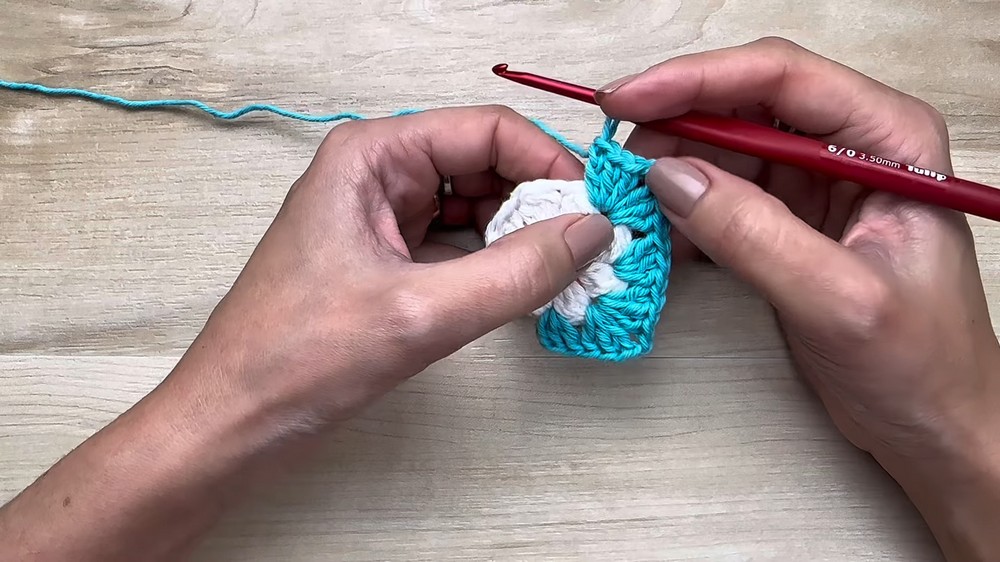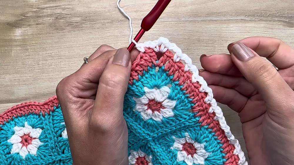 - At squares’ joins, make 1 dc in the seam between motifs (to keep edge even).