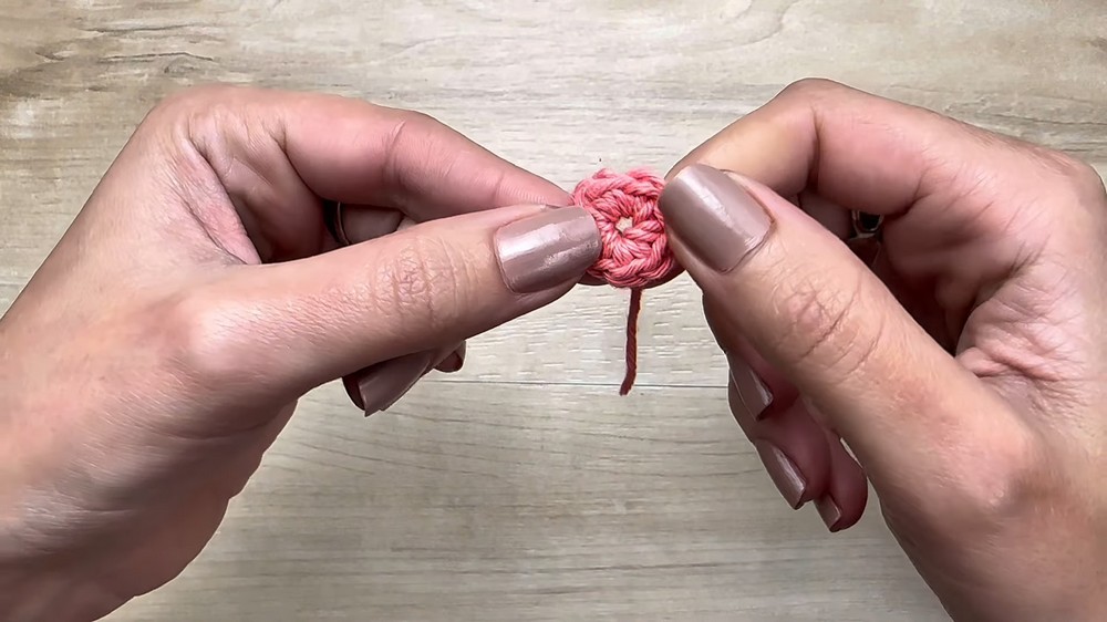 - [Make 8 sc in the ring.] (You will have 8 "heads" of stitches showing—count to confirm.)