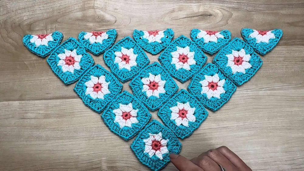 - This sample uses 10 full squares and 5 half (pointed) squares.