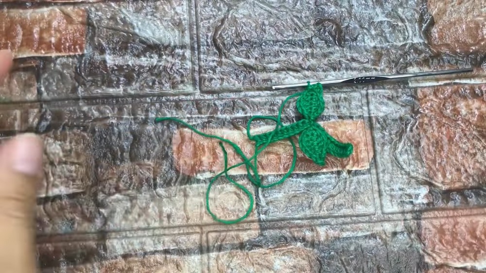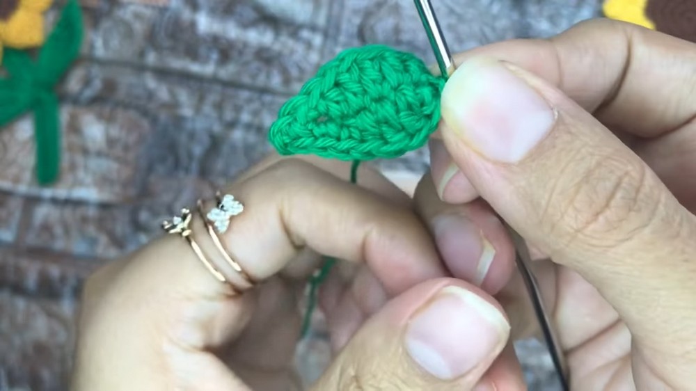 - Count 11 hdc from stem end, and sew/secure leaf here.