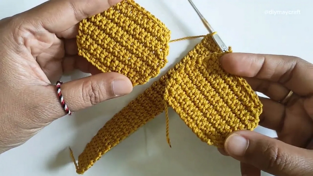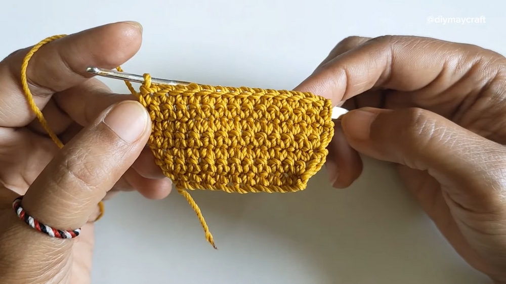 - Rows 5 to 7: Maintain 14 single crochets in each row, chaining 1 and turning at the end of each row.