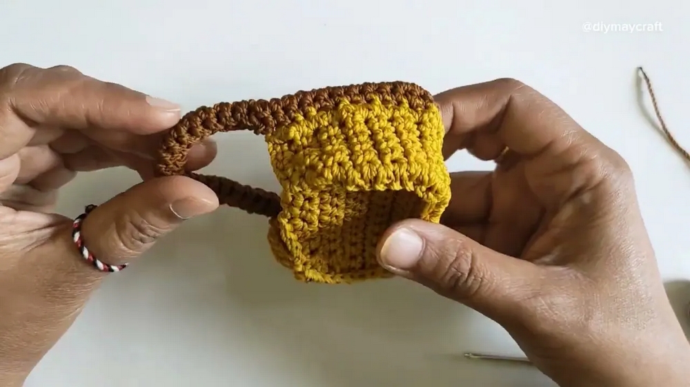 - Add single crochets to the handle for durability and repeat rows to make it stronger.