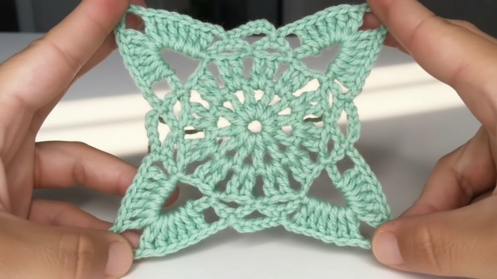 Slip stitch joining at the corners allows for neat assembly while maintaining the square’s structure.