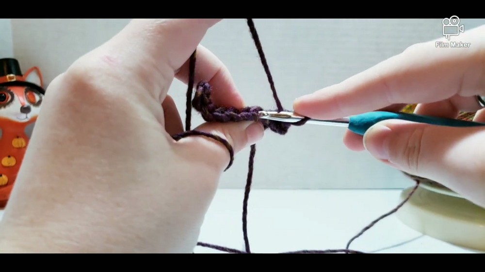 - Single crochet in the second chain from the hook and in each remaining chain across (8 sc total).