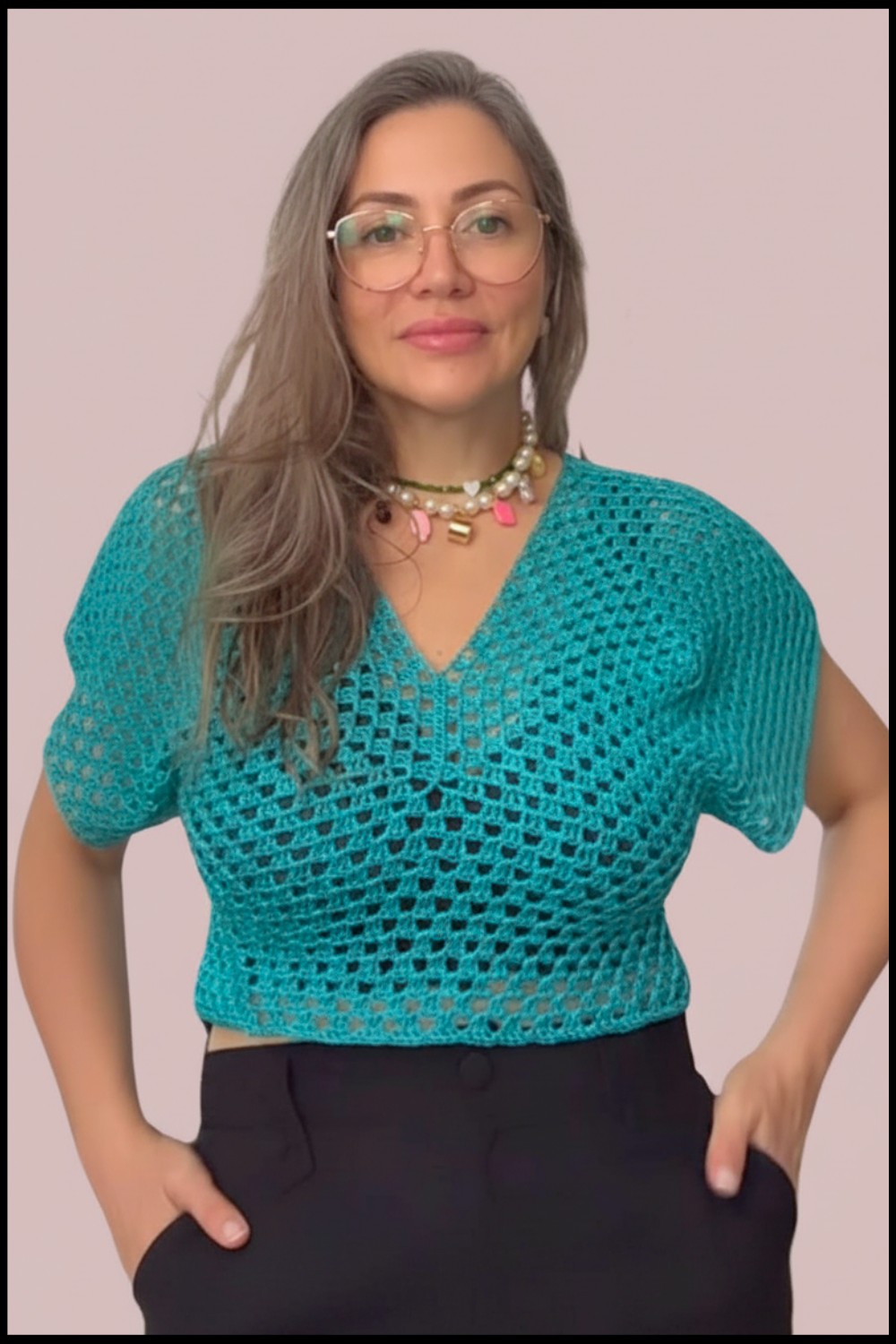 You’ve made a beautiful, quick, and economical granny square blouse, fully customizable to your size and length preferences. This method is ideal for using leftover yarn and adjusting sizing on the go.