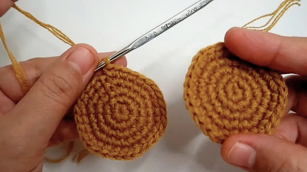 When attaching the two circles, ensure both pieces face the same direction to avoid twisting the sides. Consistently check alignment as you work on joining rows for a professional and polished finish.
