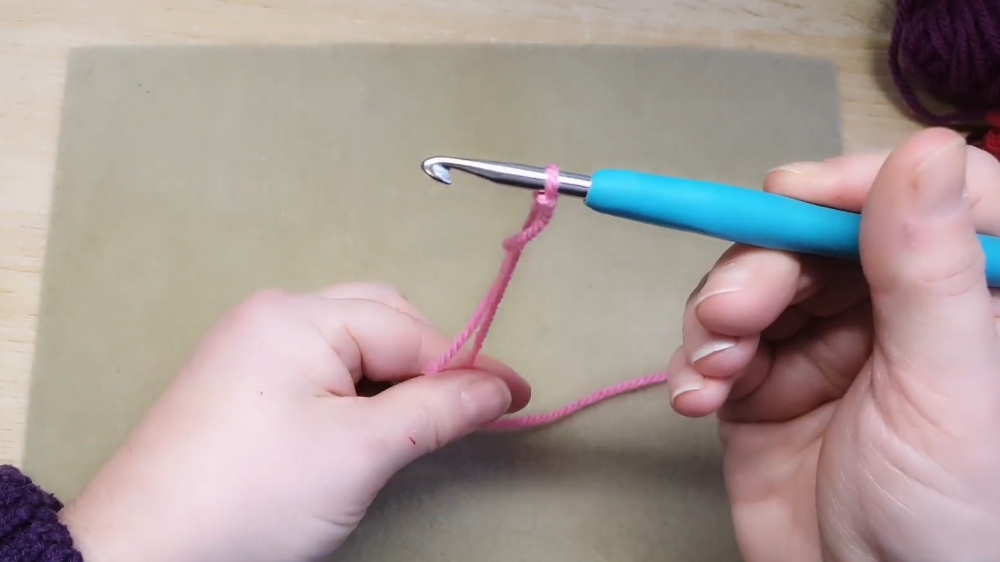 - Start with a Slip Knot: Begin with your chosen color (in the video, pink is used).