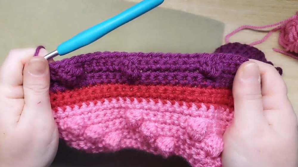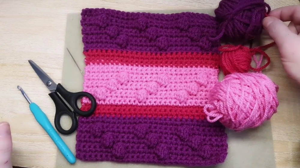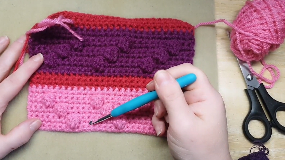 - Stitch Count: Keep an accurate count of your rows and stitches to ensure your bobbles align properly. Skipping stitches will throw off the alignment and pattern.