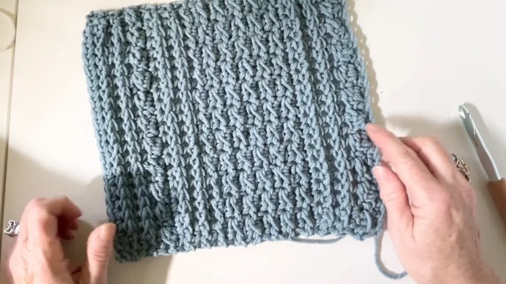 - After completing critical rows, like the front post single crochet row or even moss stitches, count your stitches to ensure accuracy and alignment.