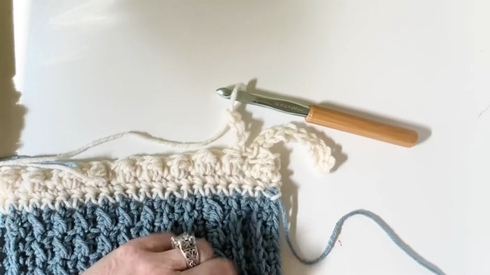 - Ensure the blanket ends with a berry stitch row to create a symmetrical berry stitch border.