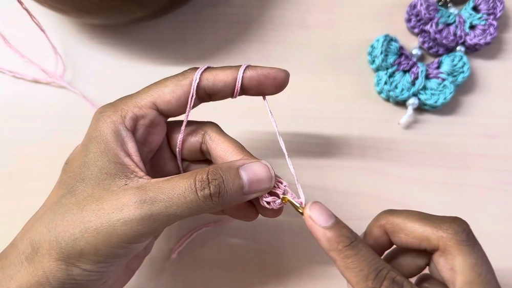 - Start with a Slip Knot: Using two strands of pink thread together, create a slip knot.