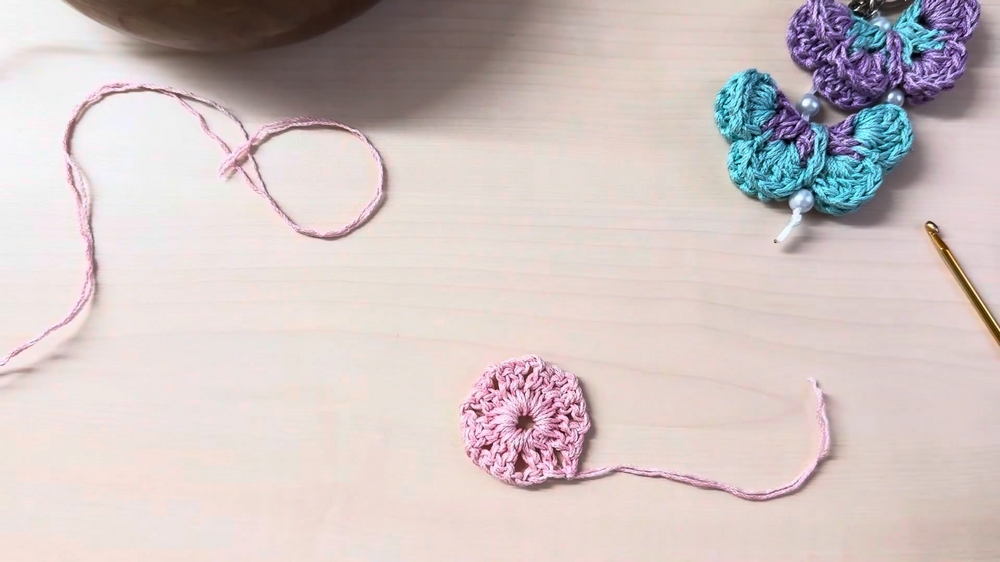- Finish the Base Round: Cut the pink thread and weave in ends as you work.