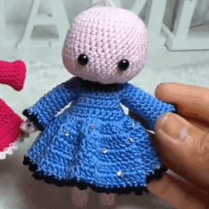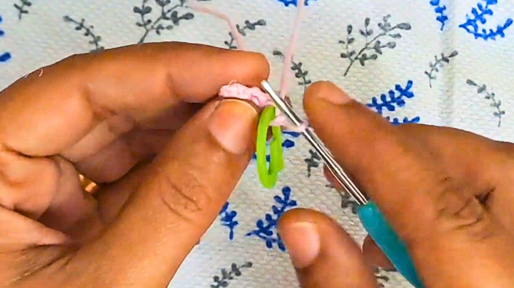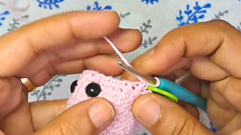 The keychain’s journey begins with the creation of its head using a foundational crochet technique known as the magic circle. By working six single crochet stitches into the circle, the initial spherical base is formed.