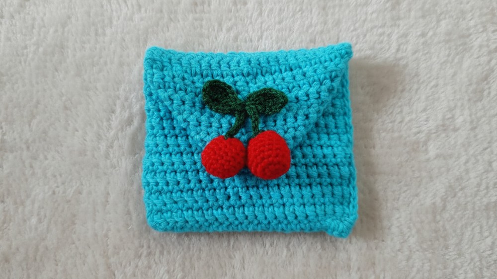 This pattern guides intermediate to advanced crocheters in creating a charming card and coin pouch with a cherry decoration. Follow the steps below to crochet this simple yet elegant accessory.