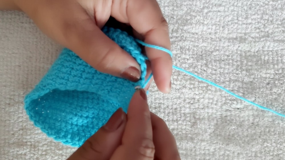 - Hold sides together and SC through the edges of both sections to seam.