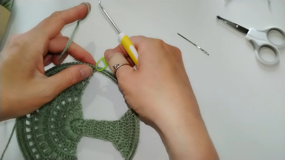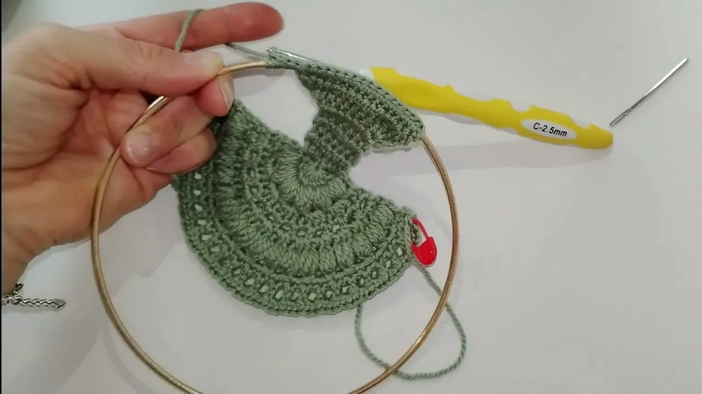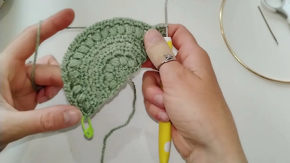 - Attach yarn to the ring with single crochets (total 76 stitches across).