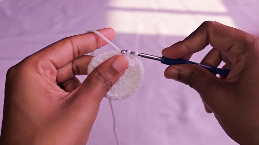 - After completing 6 rounds, cut the yarn leaving a tail.