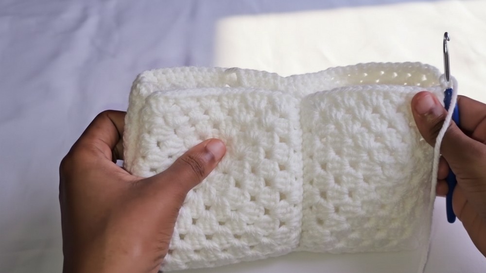 - Align Edges: Line up the two joined granny square sections with the wrong sides facing outward.