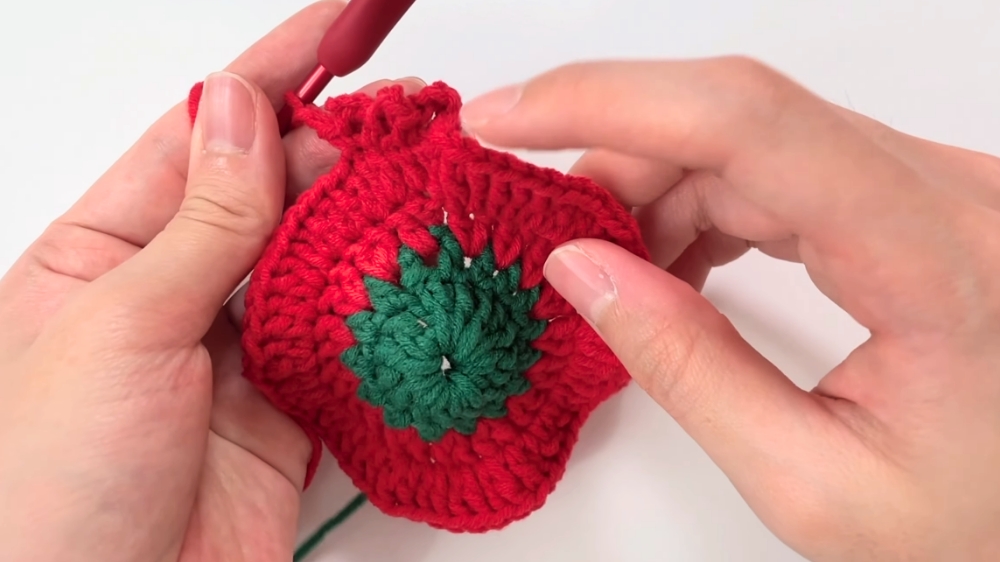 - Finish the final spiral round by pulling the yarn tight and minimizing the center hole.