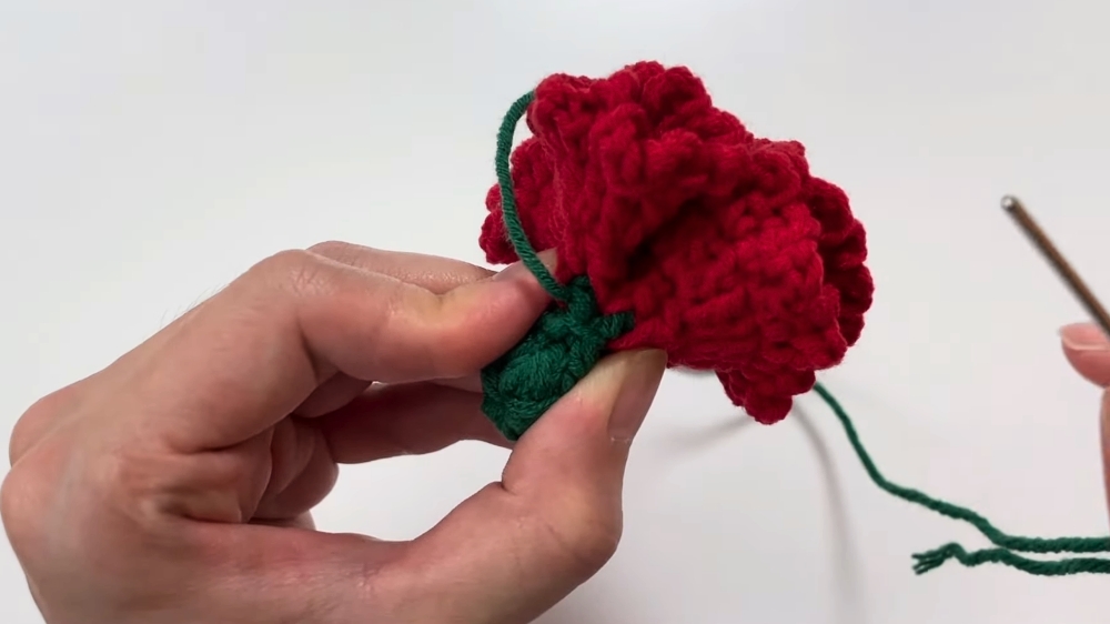 - Leave about 30cm of yarn for later use to tie the stem.