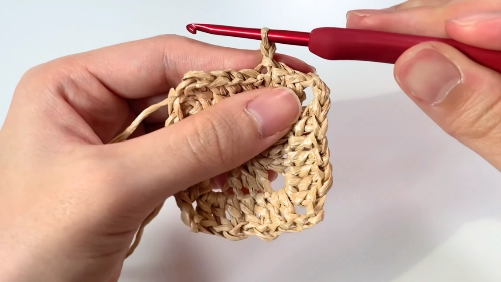 - Continue working in spirals to increase the basket base size, adding Inc stitches at four corners evenly for a square motif.