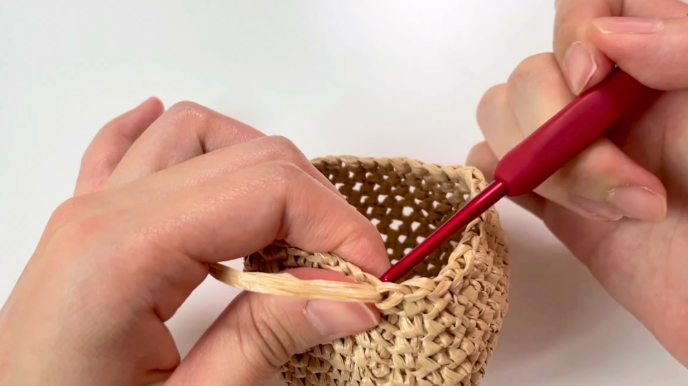 - Use single crochet stitches (SC) along the edges of the base to build the walls.