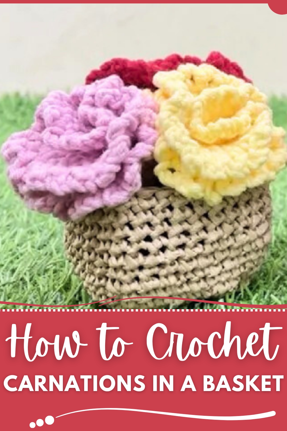 FREE Crochet Carnations Basket Pattern for Gifting or Display