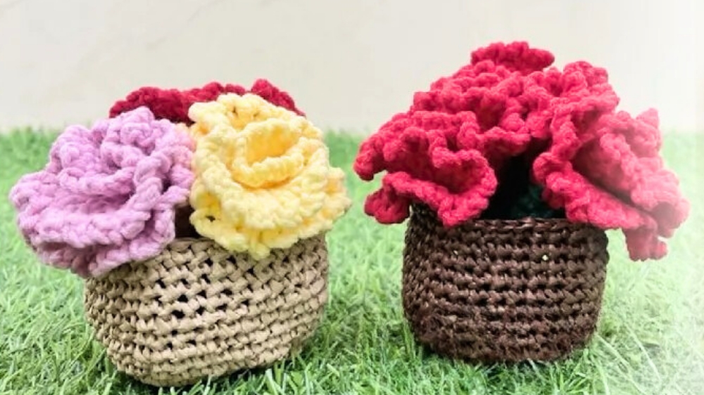 Add beauty to your space with a crochet carnations basket that brings vibrant charm and a touch of elegance while being for decor or gifts.