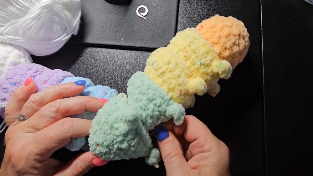 - Thread All Segments to Join: Use strong cotton yarn (recommended for durability) to stitch the caterpillar together.