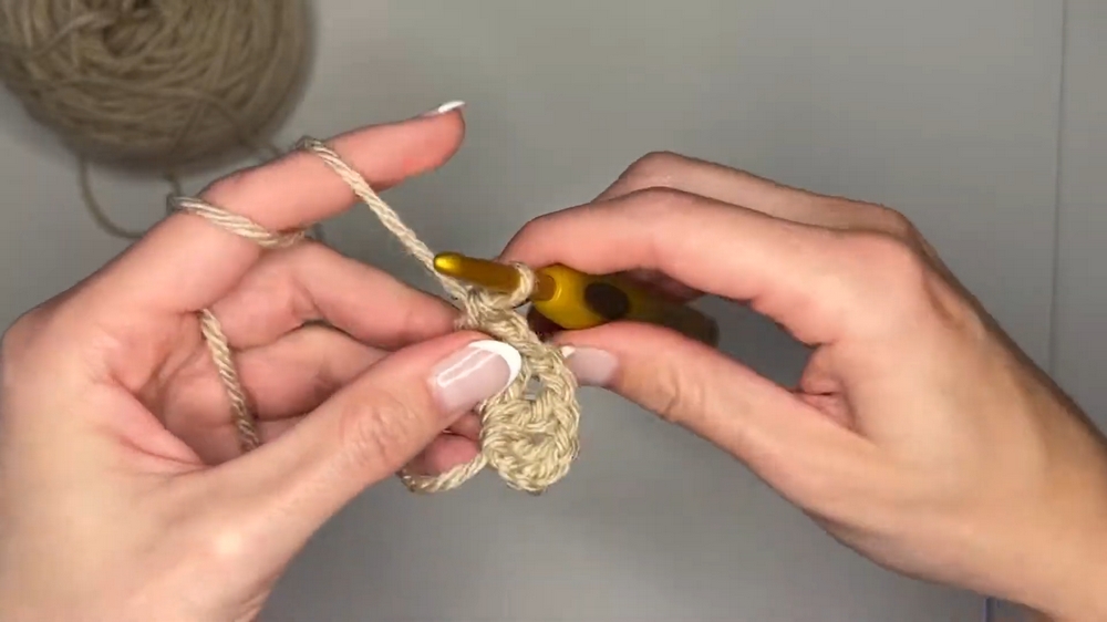 - Add an extra chain and begin single crocheting from the second chain back down to the base.