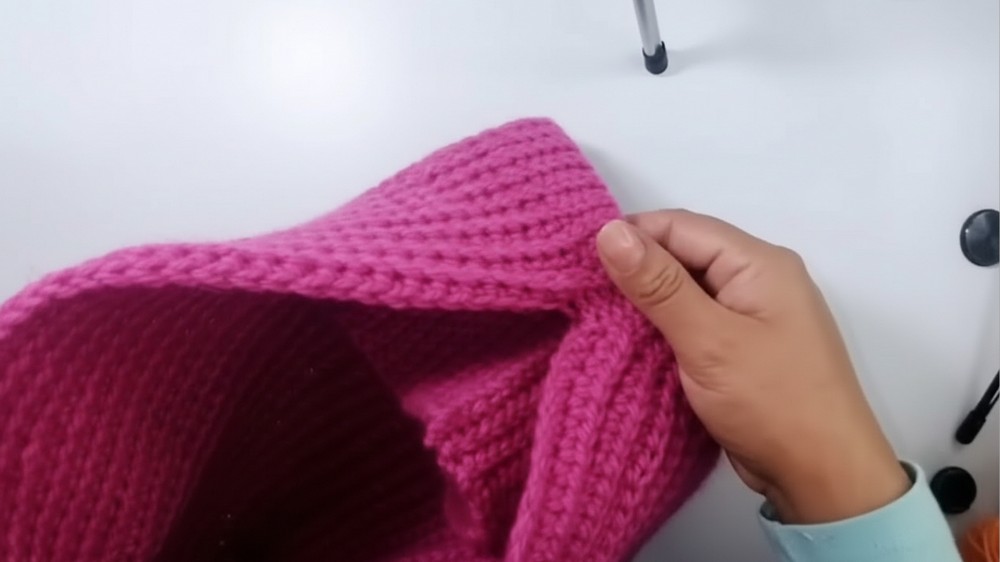 - Work evenly in hdc in the back loops only for approximately 25 cm (about 40 rows).