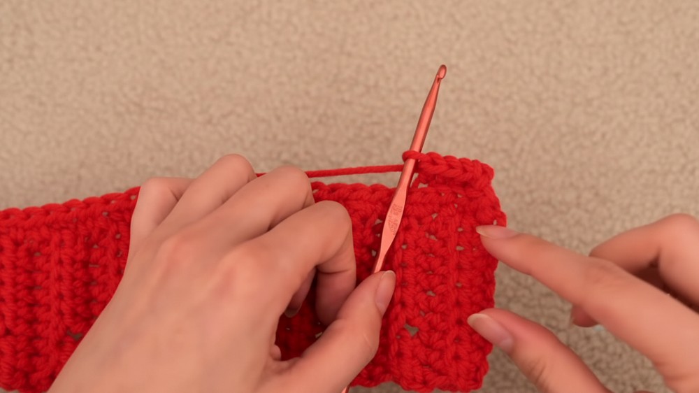 - Alternate two rows of regular HDC BLO with one row of holes, ensuring alignment of holes on opposite rows: