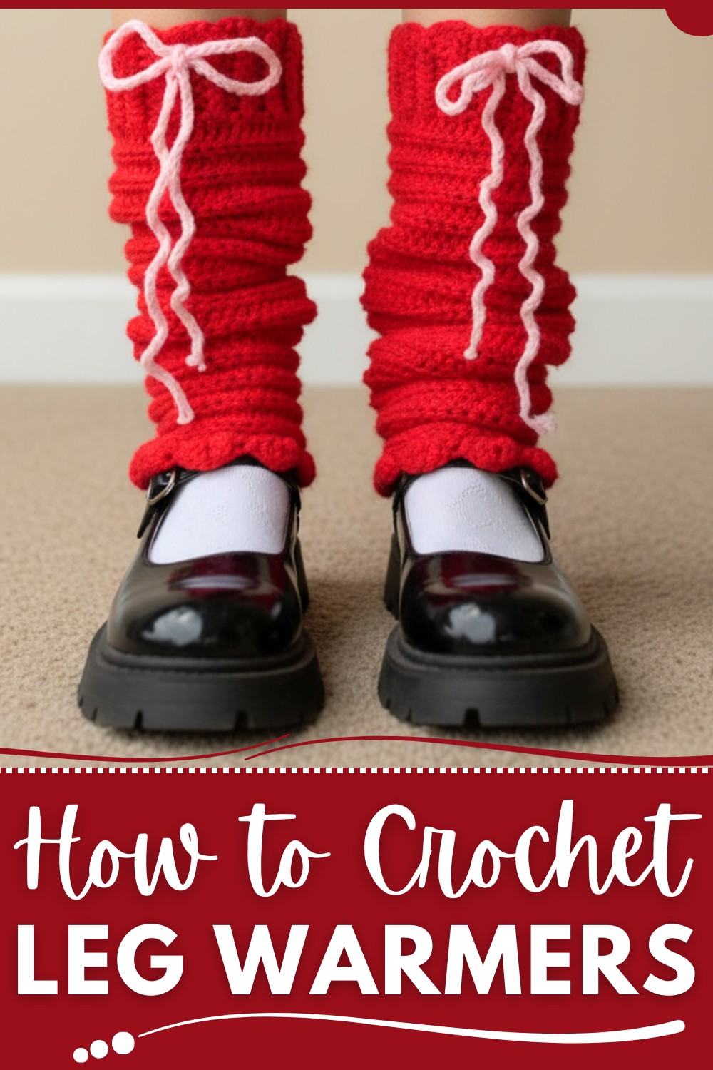This written step-by-step pattern guides intermediate to advanced crocheters through crocheting elegant winter leg warmers with a ribbed cuff, scrunched body, and scalloped edge. It is designed to highlight functionality and aesthetic appeal.