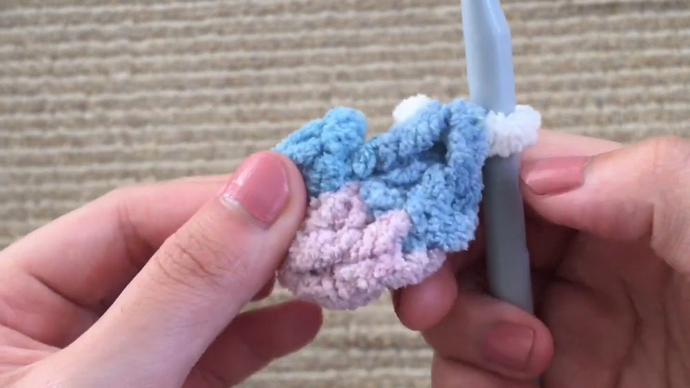 Increases follow in the next round, where each stitch alternates between single crochet and two stitches into the same space. This creates the rounded body, which continues to form through alternating increase rows and steady rounds of single crochet.