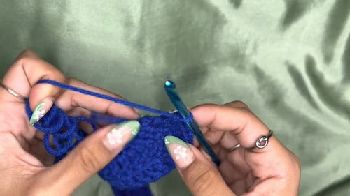 - Chain 2, turn your work, and continue making double crochet stitches across for two additional rows.