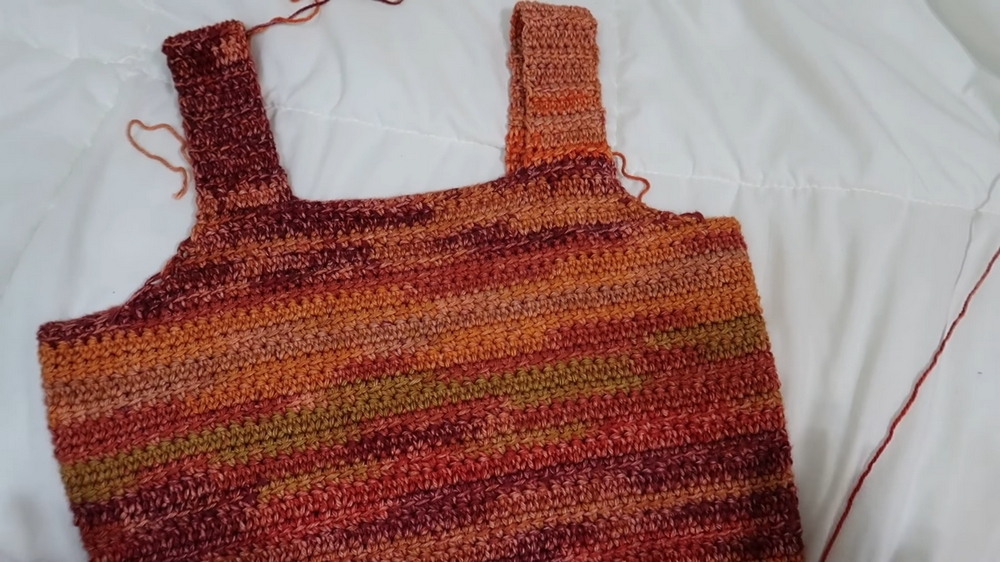 Towards the end, a few finishing rows build into shaping at shoulders—often decreasing stitches so that the strap thickness is comfortable and the top lies flat when worn. Throughout, gauge is important: working loosely enough for breathability yet firm enough to hold the floral motifs without sagging.