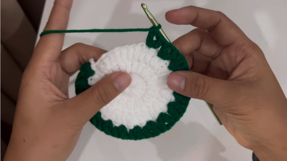 In the early steps, the center of the coaster begins to take shape as the foundation of the tulip’s unique petals starts to emerge. Using carefully balanced stitch work – including chains, double crochets, and slip stitches – the design flows smoothly into the recognizable floral outline.