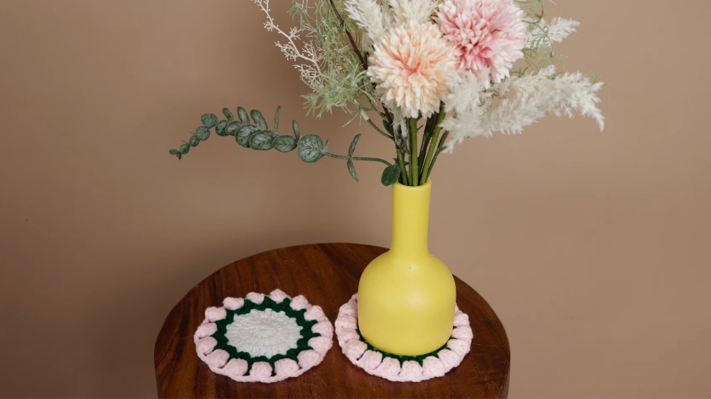 The tulip crochet coaster is a delightful and unique project that combines basic circular construction with decorative shaping to mimic a ring of blooming flowers. By visually following the pattern and mastering the petal clusters, you can create a beautiful, spring-themed coaster.