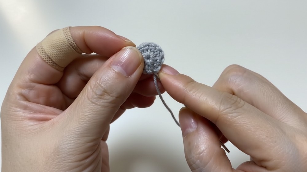 - Insert hook, grab the working yarn, and chain 1 to secure the ring.