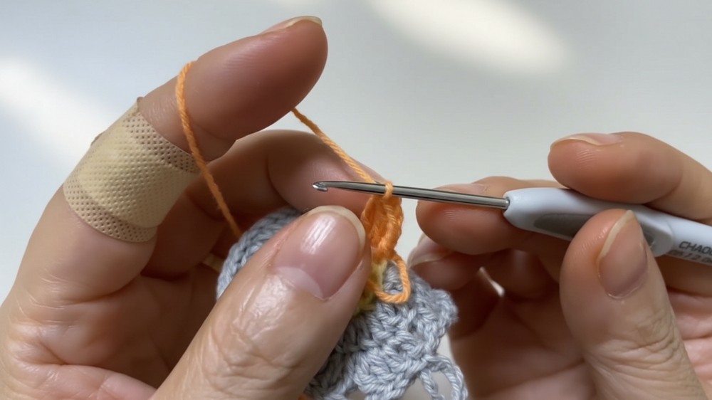 - Fasten off the yarn to prepare for the next color (if changing colors).