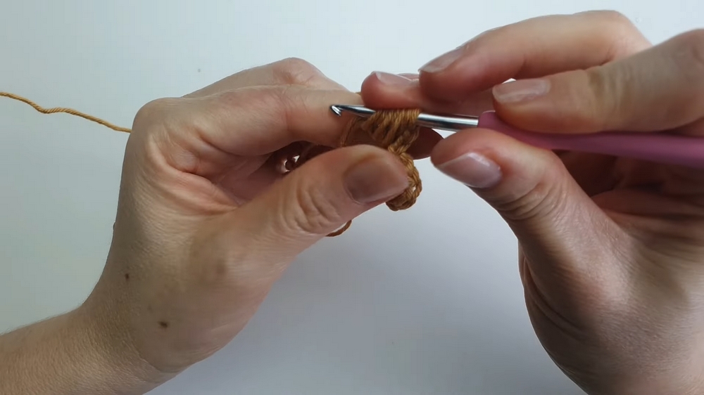 The pattern begins with the magic ring, which forms the base of a flower with five symmetrical petals.
