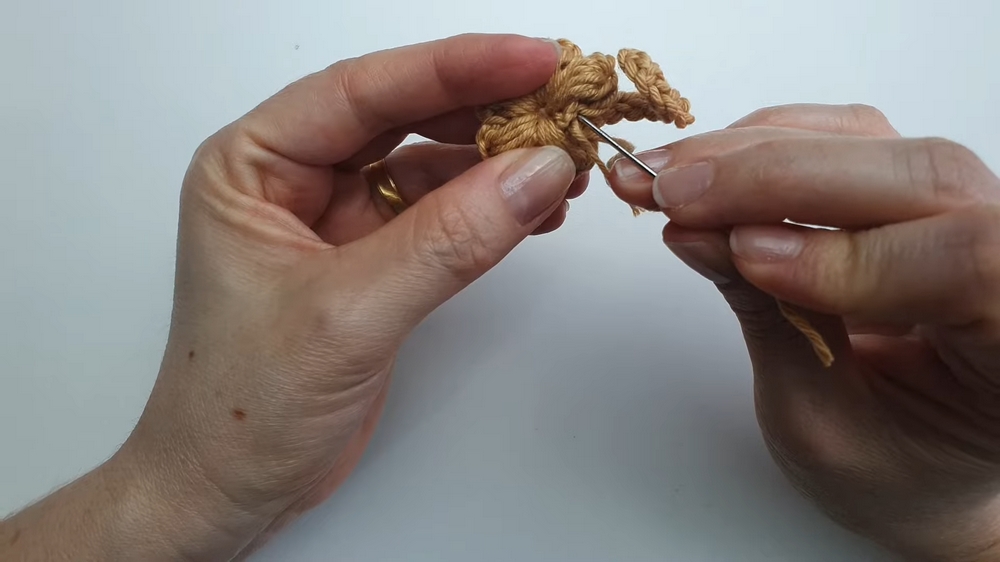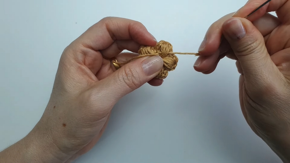 When working the partial puff stitches for the petals, you can help them stand out and look fuller by using your tapestry needle to gently shape and push the puff stitch outward before closing the round.