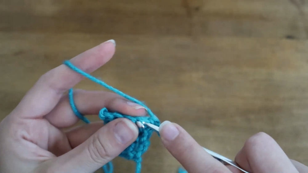 - Chain 1, skip one stitch, and treble crochet into the following stitch.
