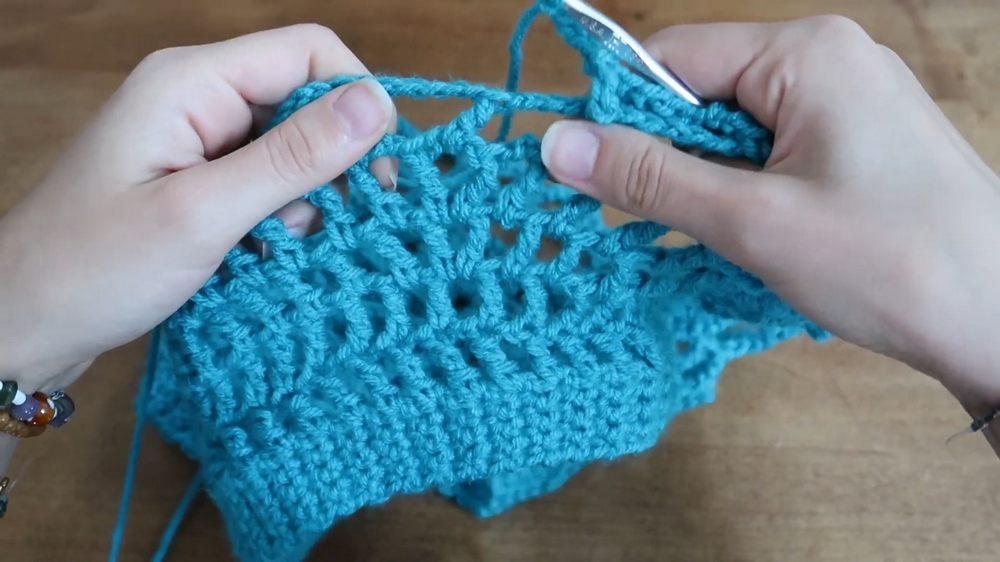 - Chain 6 between treble crochets and follow the shape of the previous rows.