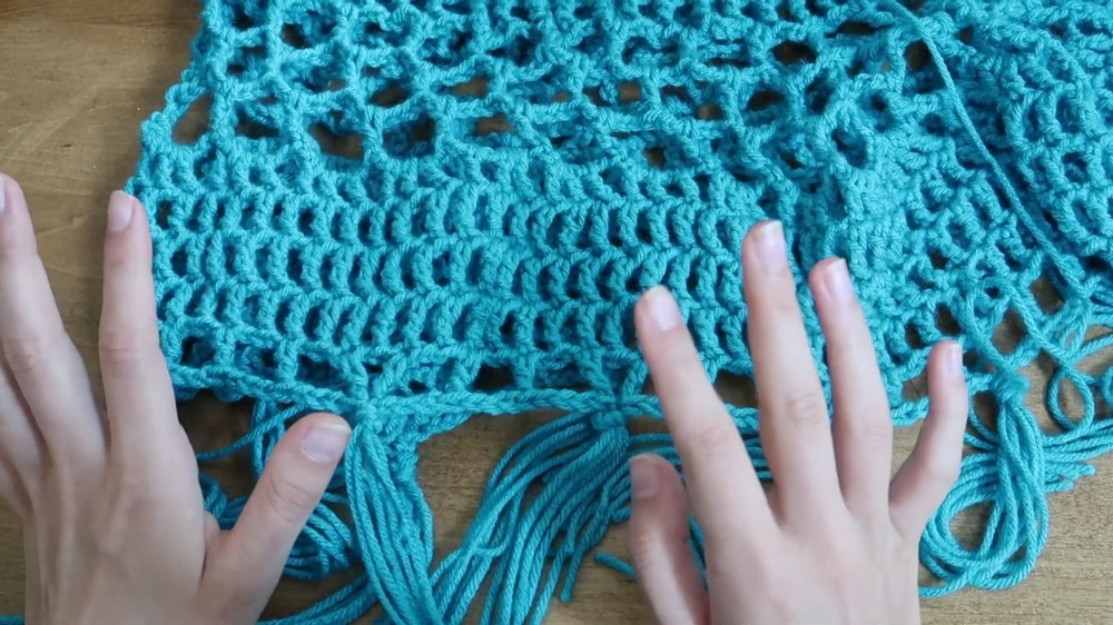 - This portion will form the top band of the poncho that sits on your shoulders. Ensure stitches are even.