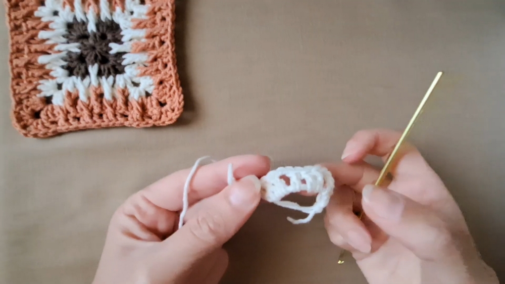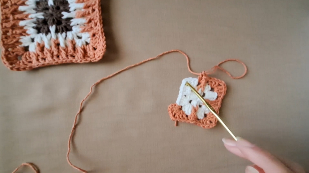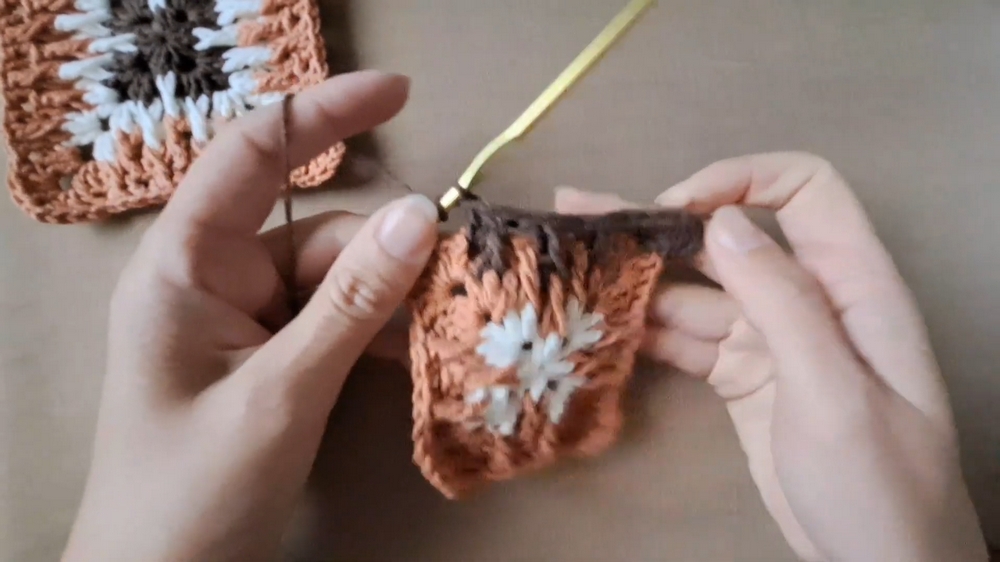 Important Remark: Always ensure you are skipping the correct stitch behind your long mosaic stitch. If you fail to skip the stitch in the current row, your stitch count will increase incorrectly, causing the square to lose its shape.