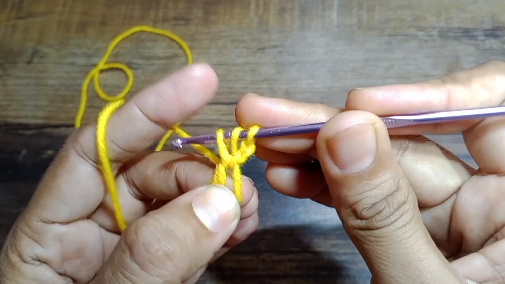 - Create a magical ring by folding the thread over your fingers and making a chain within the loop.